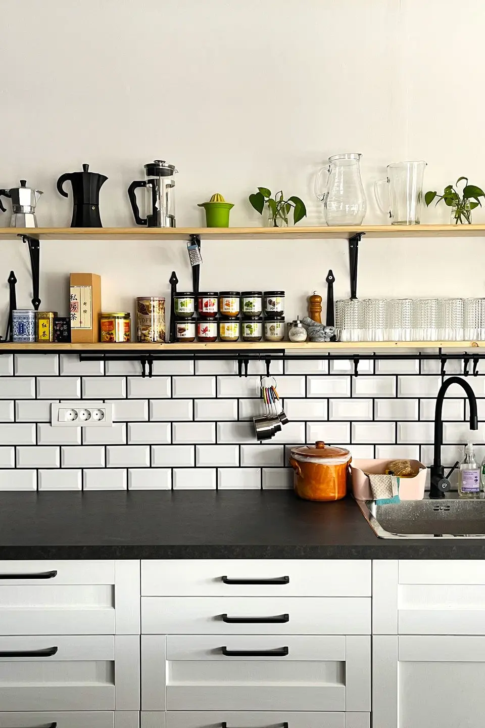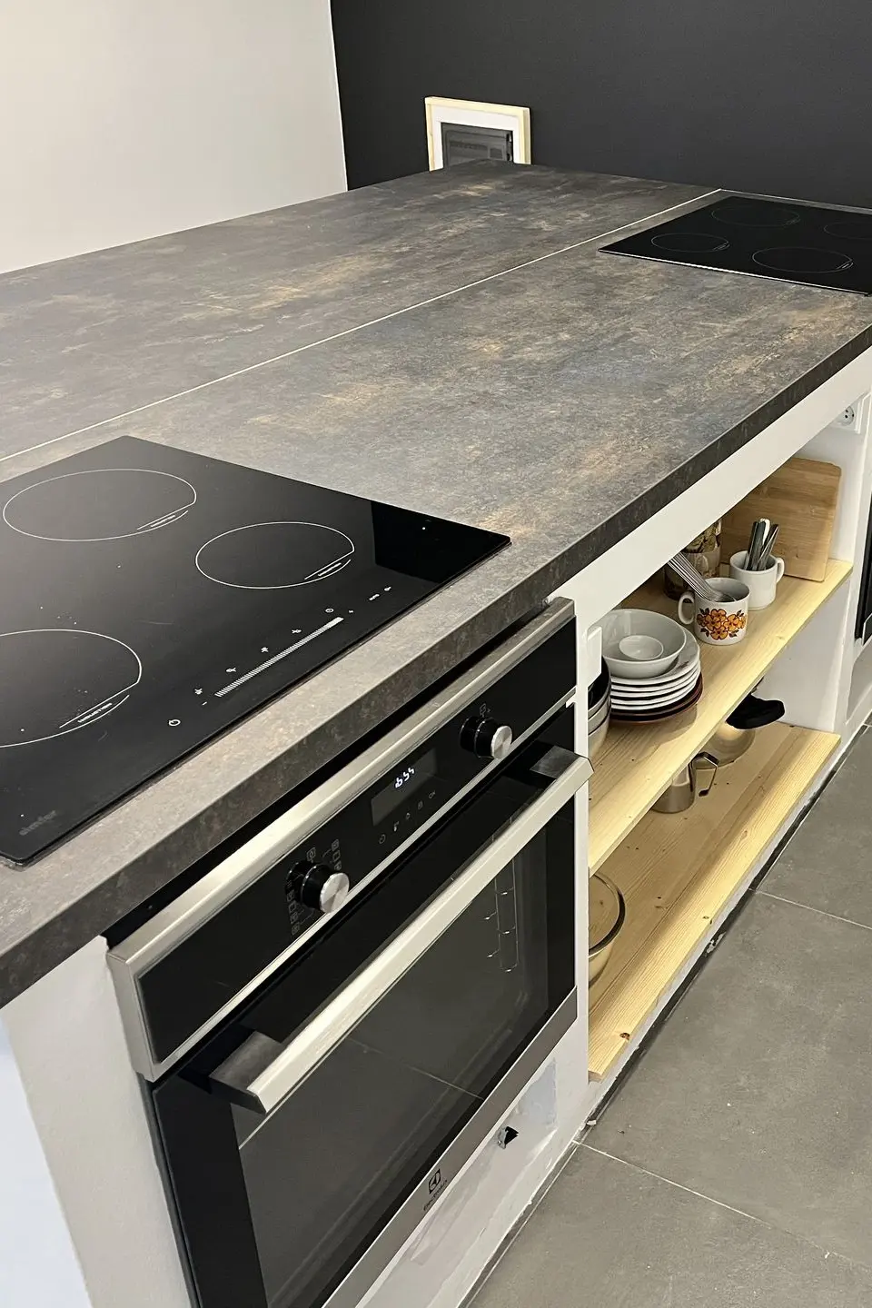 Kuhinja je opremljena z dvema ventilacijskima pečicama, dvema indukcijskima ploščama, dvema napama, koritom, pomivalnim strojem, hladilnikom, zamrzovalnikom ter veliko delovne površine.